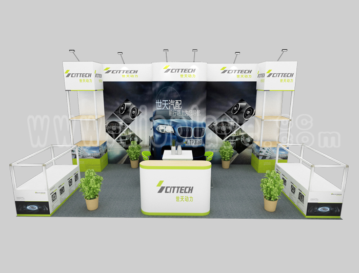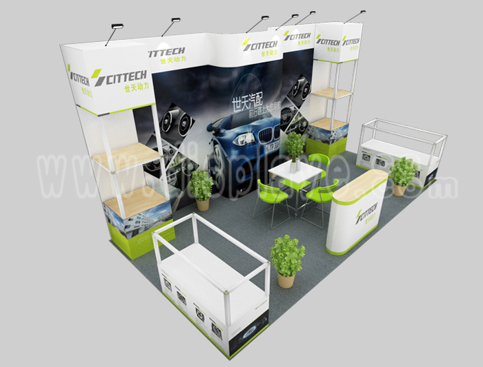 如你想参照这设计图DIY设计构思你想要的展台,此造型结构适用3x6m以下方形展位,你可增加你想要的展示功能或更多的引人注目特装造型。