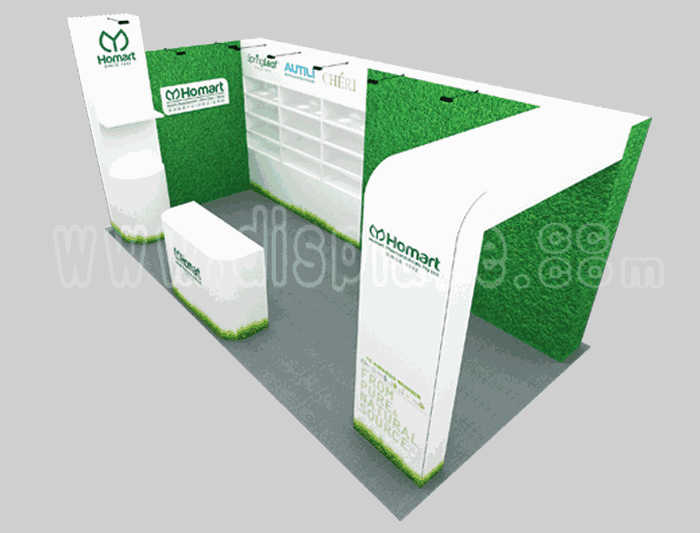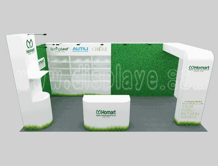 如你想参照这设计图DIY设计构思你想要的展台,此造型结构适用3x6m以下方形展位,你可增加你想要的展示功能或更多的引人注目特装造型。