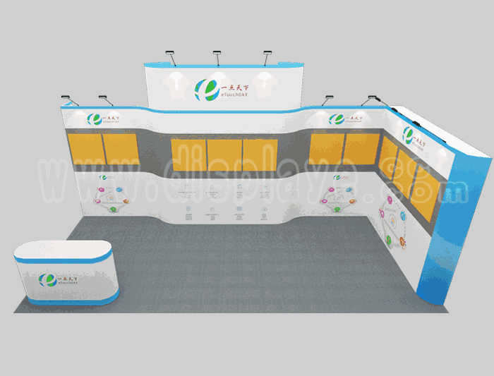 如你想参照这设计图DIY设计构思你想要的展台,此造型结构适用3x6m以下方形展位,你可增加你想要的展示功能或更多的引人注目特装造型。