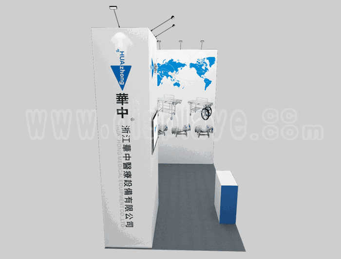 如你想参照这设计图DIY设计构思你想要的展台,此造型结构适用3x6m以下方形展位,你可增加你想要的展示功能或更多的引人注目特装造型。