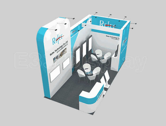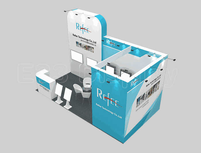 如你想参照这设计图DIY设计构思你想要的展台,此造型结构适用3x6m以下方形展位,你可增加你想要的展示功能或更多的引人注目特装造型。