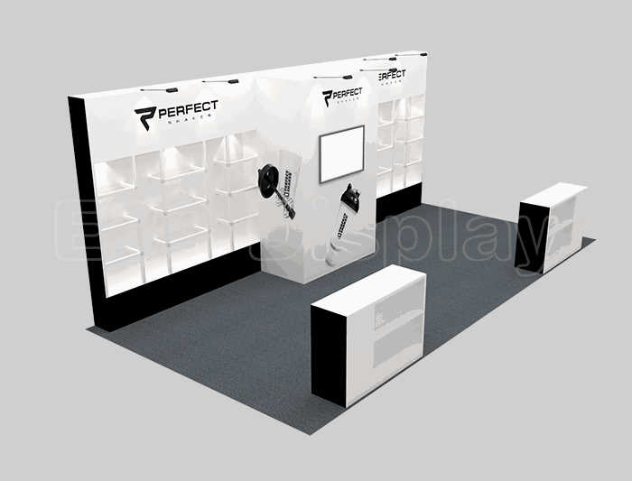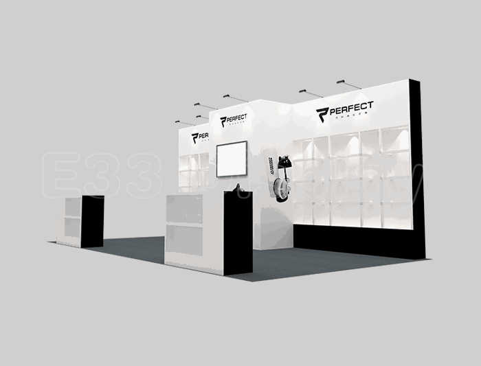 如你想参照这设计图DIY设计构思你想要的展台,此造型结构适用3x6m以下方形展位,你可增加你想要的展示功能或更多的引人注目特装造型。