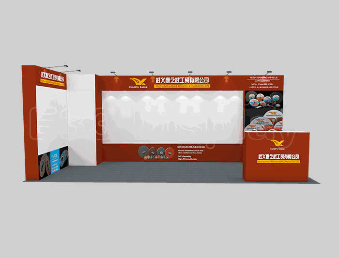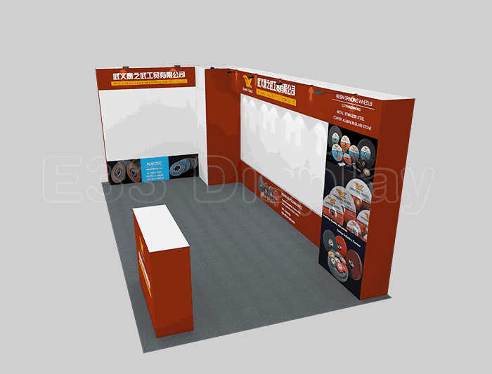 如你想参照这设计图DIY设计构思你想要的展台,此造型结构适用3x6m以下方形展位,你可增加你想要的展示功能或更多的引人注目特装造型。