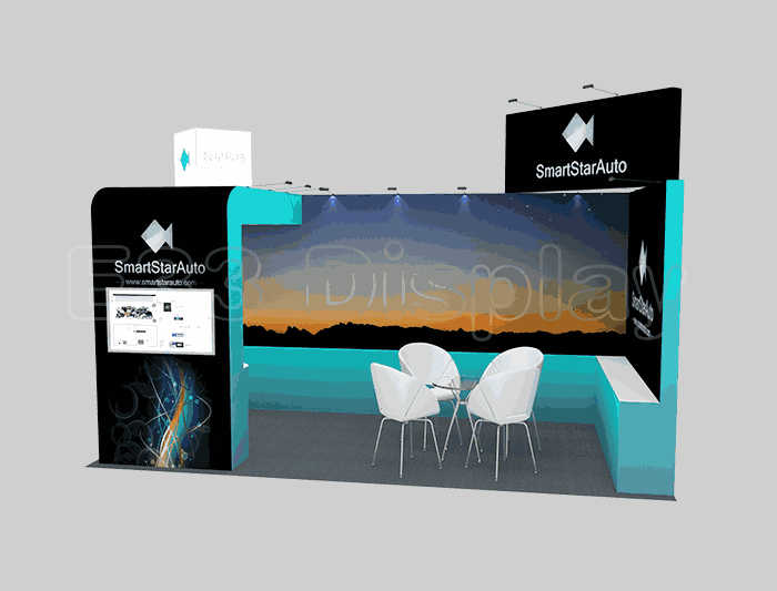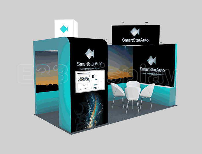 如你想参照这设计图DIY设计构思你想要的展台,此造型结构适用3x6m以下方形展位,你可增加你想要的展示功能或更多的引人注目特装造型。