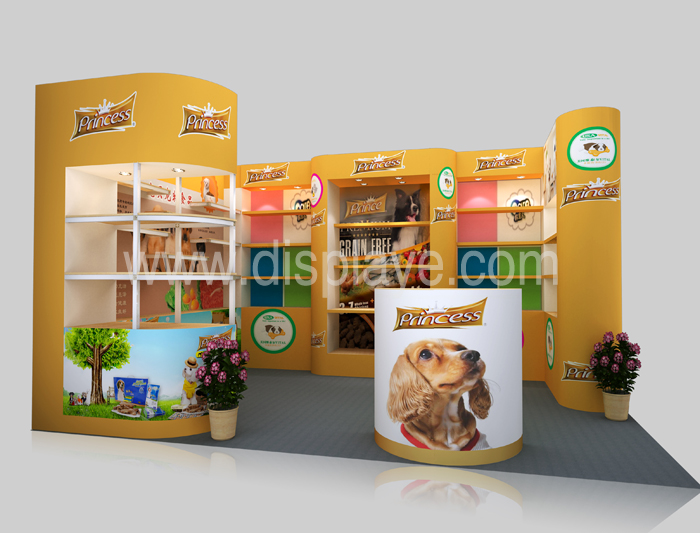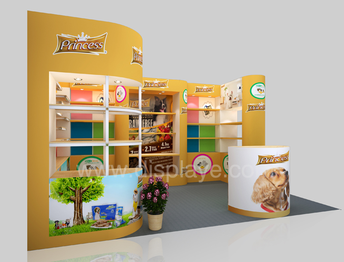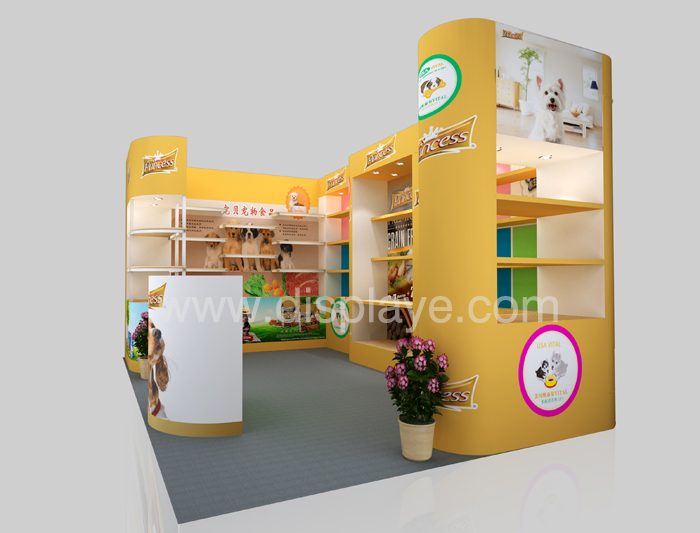 温馨提示:如你想参照这设计图DIY设计构思你想要的展台,此造型结构适用3x4m以下方形展位,你可增加你想要的展示功能或更多的引人注目特装造型。