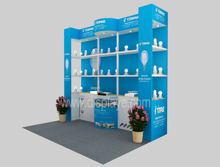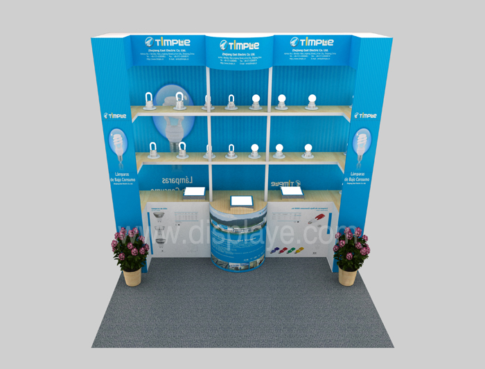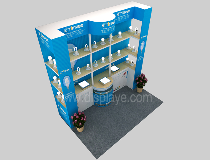 温馨提示:如你想参照这设计图DIY设计构思你想要的展台,此造型结构适用3x2m以下方形展位,你可增加你想要的展示功能或更多的引人注目特装造型。