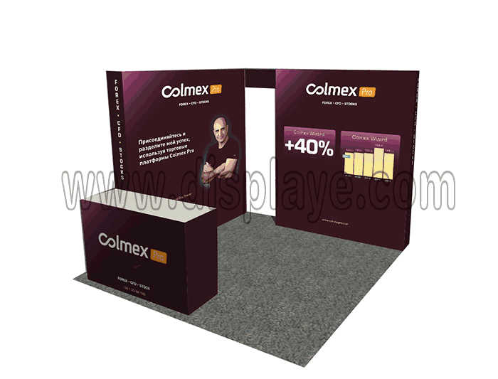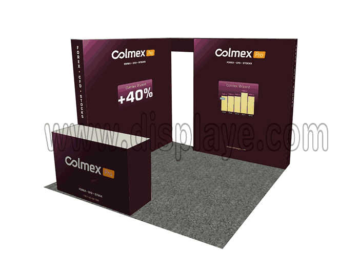 温馨提示:如你想参照这设计图DIY设计构思你想要的展台,此造型结构适用3x3m以下方形展位,你可增加你想要的展示功能或更多的引人注目特装造型。