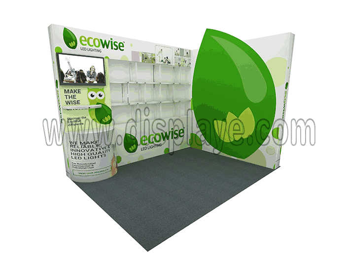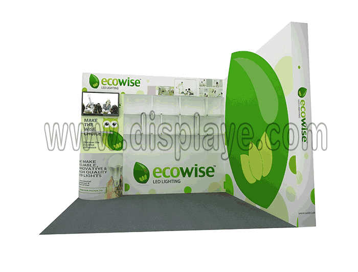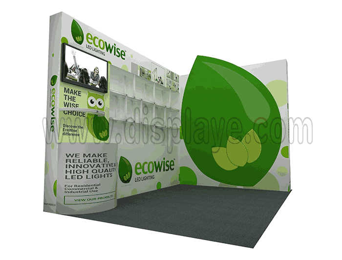 温馨提示:如你想参照这设计图DIY设计构思你想要的展台,此造型结构适用3x3m以下方形展位,你可增加你想要的展示功能或更多的引人注目特装造型。
