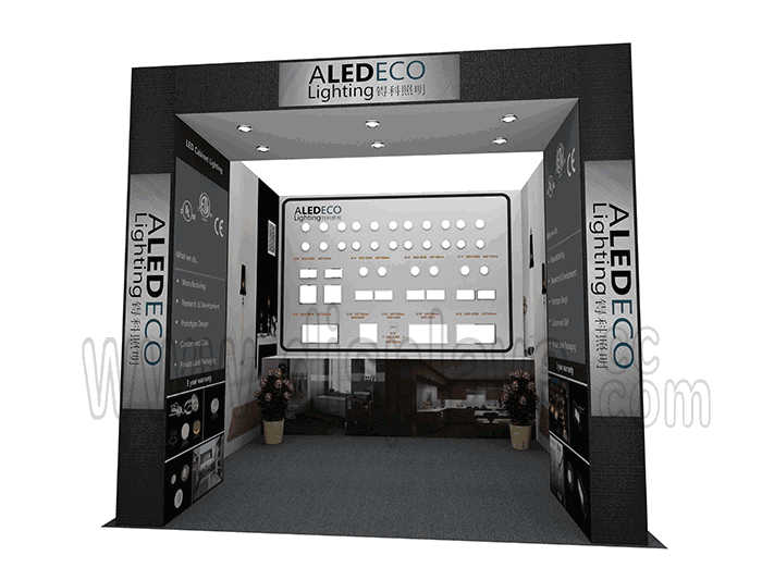 温馨提示:如你想参照这设计图DIY设计构思你想要的展台,此造型结构适用3x3m以下方形展位,你可增加你想要的展示功能或更多的引人注目特装造型。