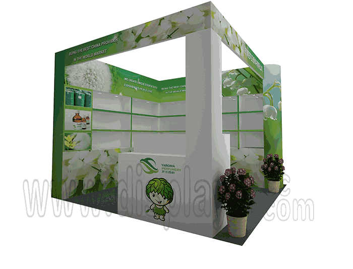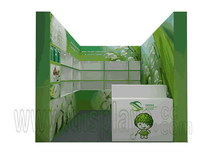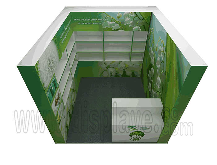 温馨提示:如你想参照这设计图DIY设计构思你想要的展台,此造型结构适用3x3m以下方形展位,你可增加你想要的展示功能或更多的引人注目特装造型。