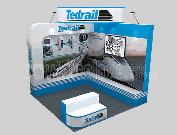 Tips: If you want to DIY design your own stand, this modeling structure applies to 3x3m square booth or below, you can increase more exhibition function or more striking customized modeling.