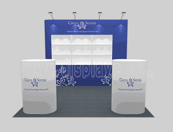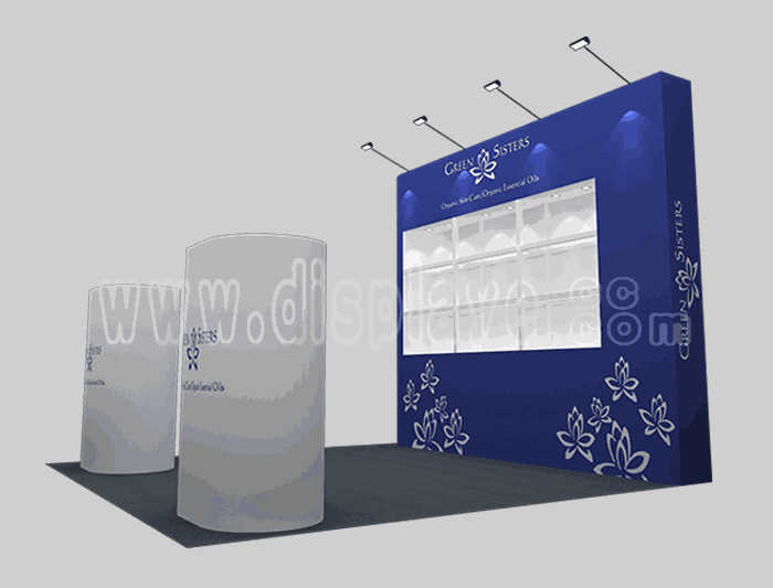 Tips: If you want to DIY design your own stand, this modeling structure applies to 3x3m square booth or below, you can increase more exhibition function or more striking customized modeling.