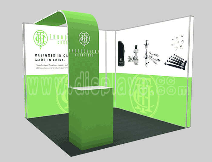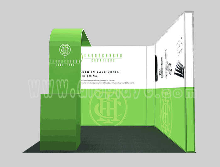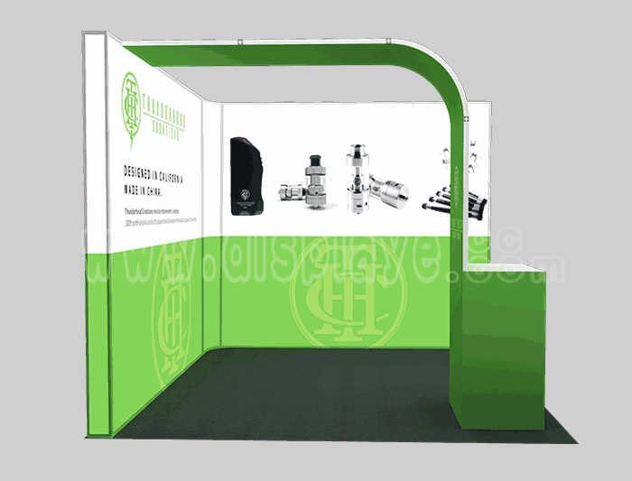 Tips: If you want to DIY design your own stand, this modeling structure applies to 3x3m square booth or below, you can increase more exhibition function or more striking customized modeling.
