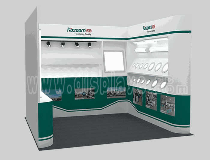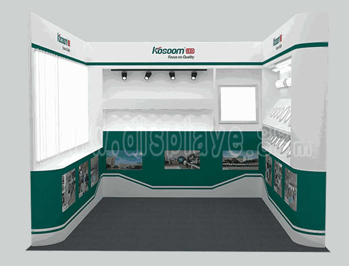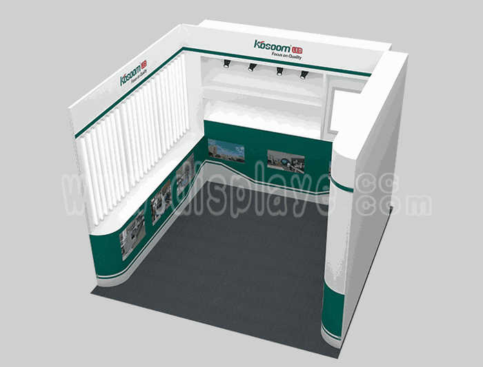 Tips: If you want to DIY design your own stand, this modeling structure applies to 3x3m square booth or below, you can increase more exhibition function or more striking customized modeling.