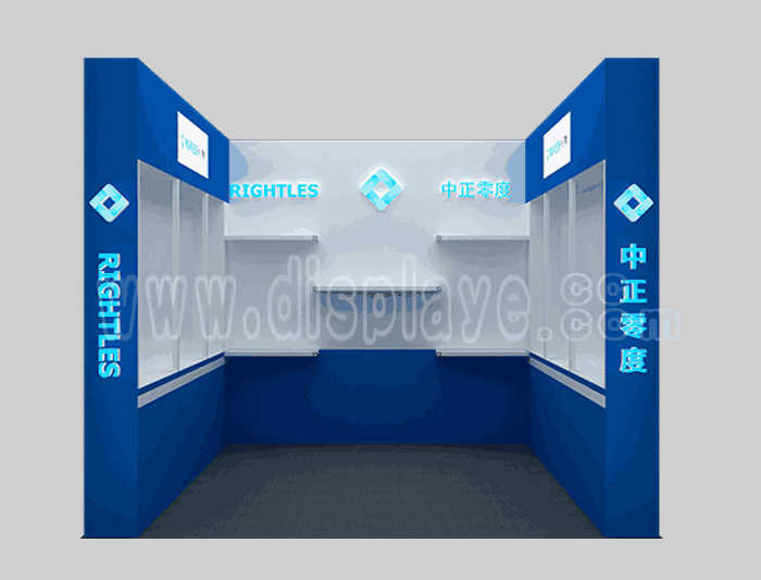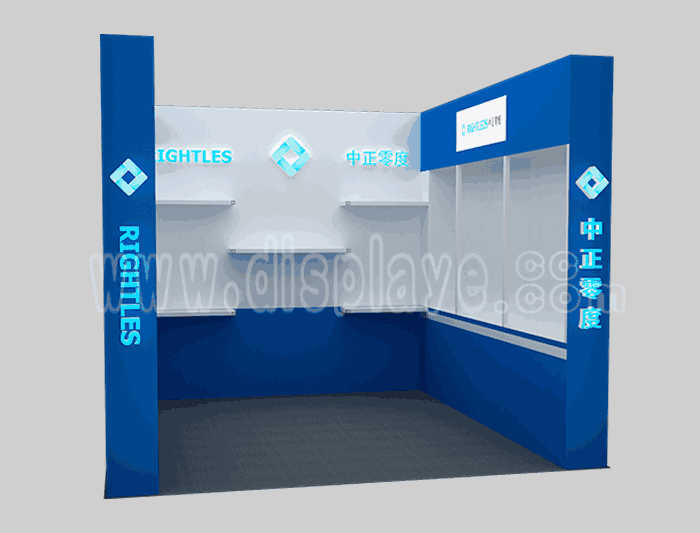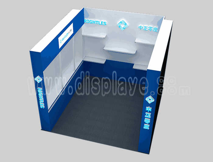 Tips: If you want to DIY design your own stand, this modeling structure applies to 3x3m square booth or below, you can increase more exhibition function or more striking customized modeling.