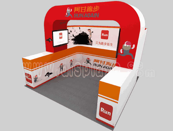 Tips: If you want to DIY design your own stand, this modeling structure applies to 3x3m square booth or below, you can increase more exhibition function or more striking customized modeling.