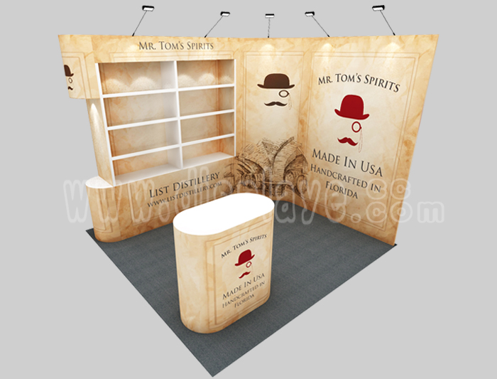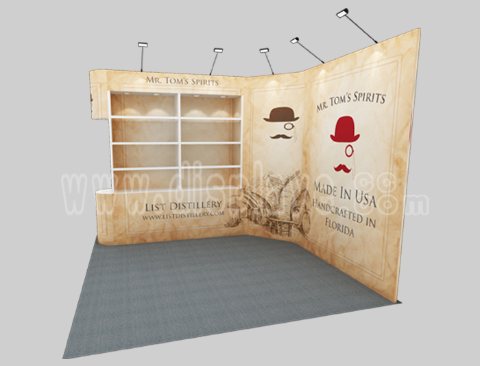 Tips: If you want to DIY design your own stand, this modeling structure applies to 3x3m square booth or below, you can increase more exhibition function or more striking customized modeling.