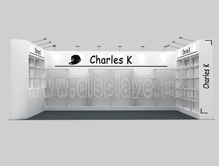 Tips: If you want to DIY design your own stand, this modeling structure applies to 3x6m square booth or below, you can increase more exhibition function or more striking customized modeling.