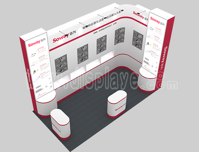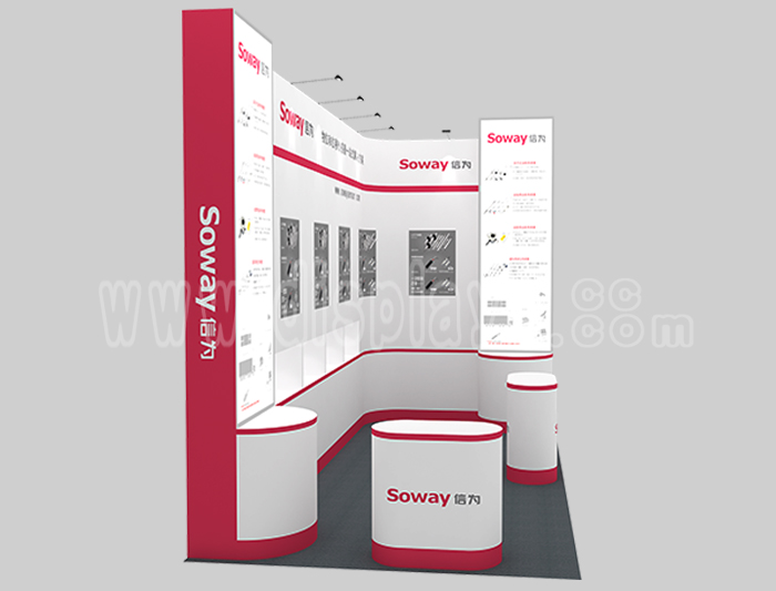Tips: If you want to DIY design your own stand, this modeling structure applies to 3x6m square booth or below, you can increase more exhibition function or more striking customized modeling.