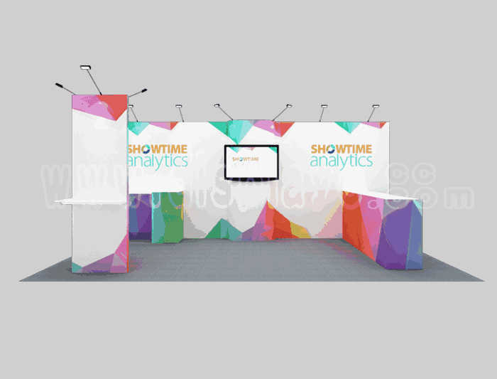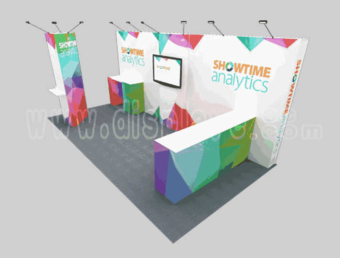 Tips: If you want to DIY design your own stand, this modeling structure applies to 3x6m square booth or below, you can increase more exhibition function or more striking customized modeling.