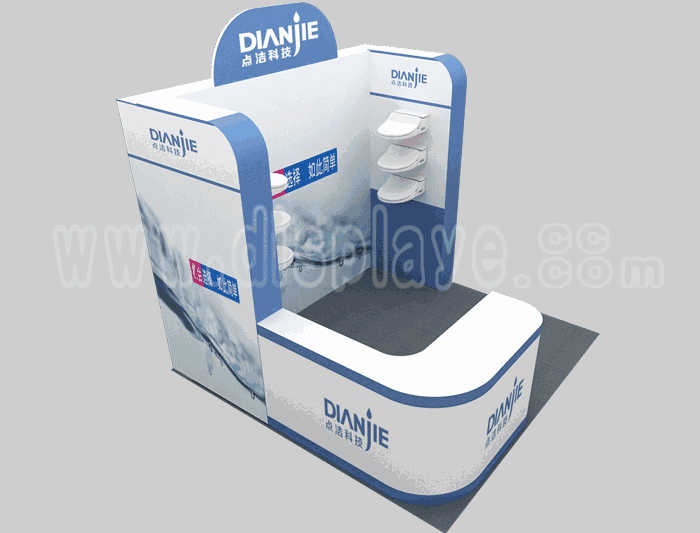 Tips: If you want to DIY design your own stand, this modeling structure applies to 3x3m square booth or below, you can increase more exhibition function or more striking customized modeling.