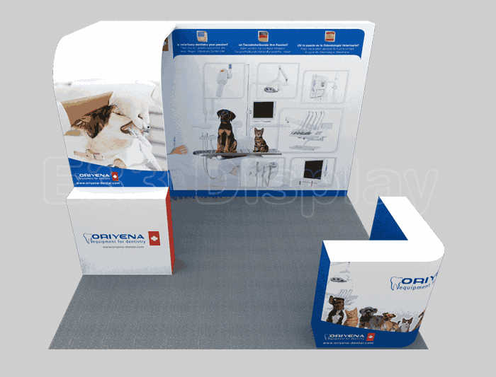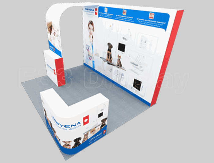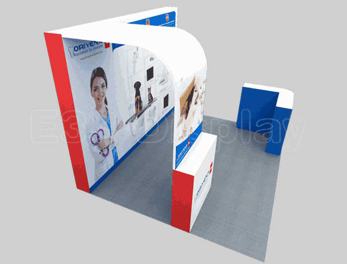 Tips: If you want to DIY design your own stand, this modeling structure applies to 3x3m square booth or below, you can increase more exhibition function or more striking customized modeling.