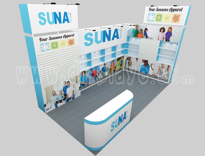 Tips: If you want to DIY design your own stand, this modeling structure applies to 3x6m square booth or below, you can increase more exhibition function or more striking customized modeling.