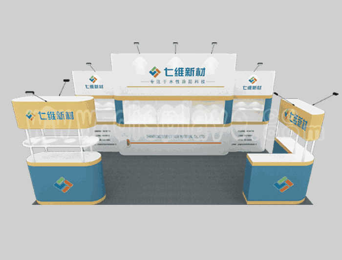 Tips: If you want to DIY design your own stand, this modeling structure applies to 3x6m square booth or below, you can increase more exhibition function or more striking customized modeling.