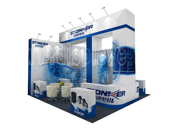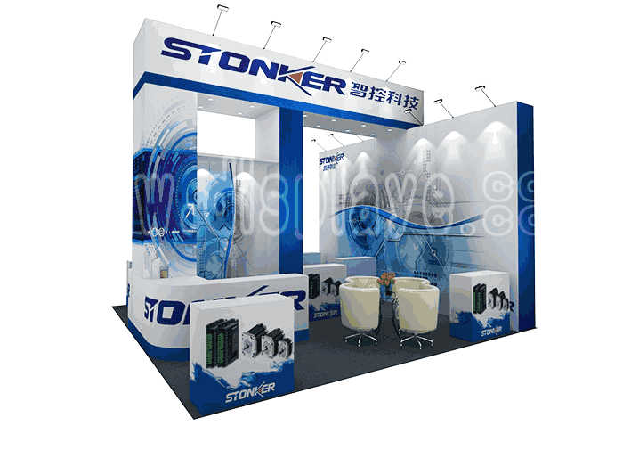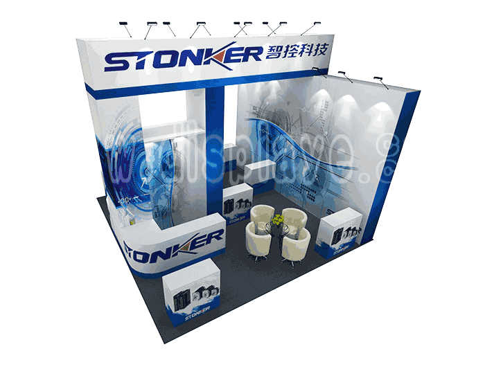 Tips: If you want to DIY design your own stand, this modeling structure applies to 6x6m square booth or below, you can increase more exhibition function or more striking customized modeling.
