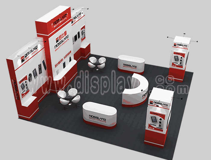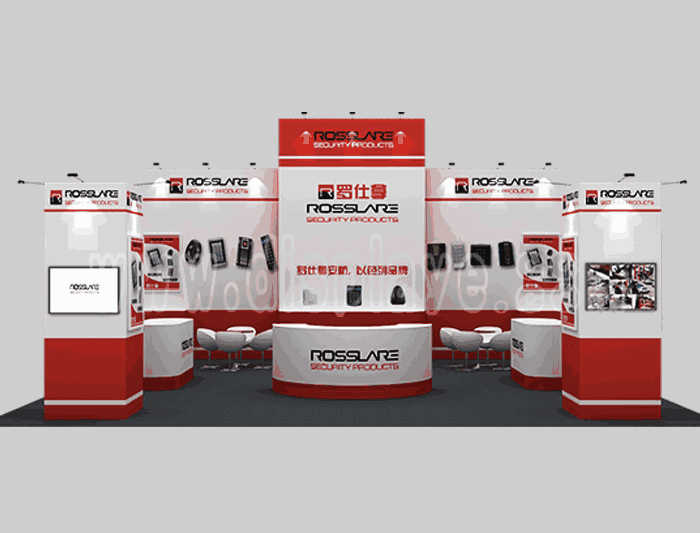 Tips: If you want to DIY design your own stand, this modeling structure applies to 9x9m square booth or below, you can increase more exhibition function or more striking customized modeling.