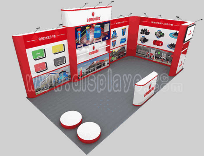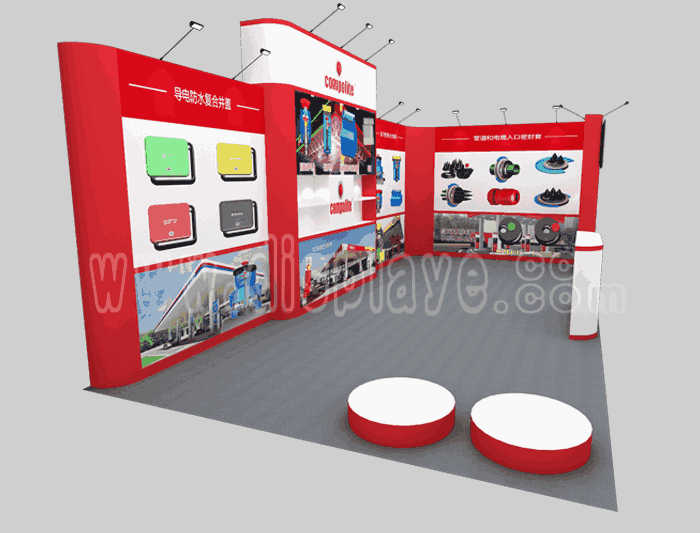 Tips: If you want to DIY design your own stand, this modeling structure applies to 4x8m square booth or below, you can increase more exhibition function or more striking customized modeling.
